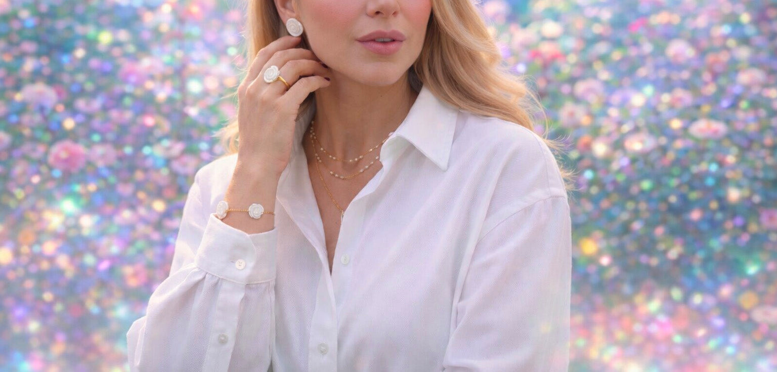 Inspired by jasmine flowers and glowing mother of pearl, Mayraβs collection feels soft, feminine, and made to shine every day.