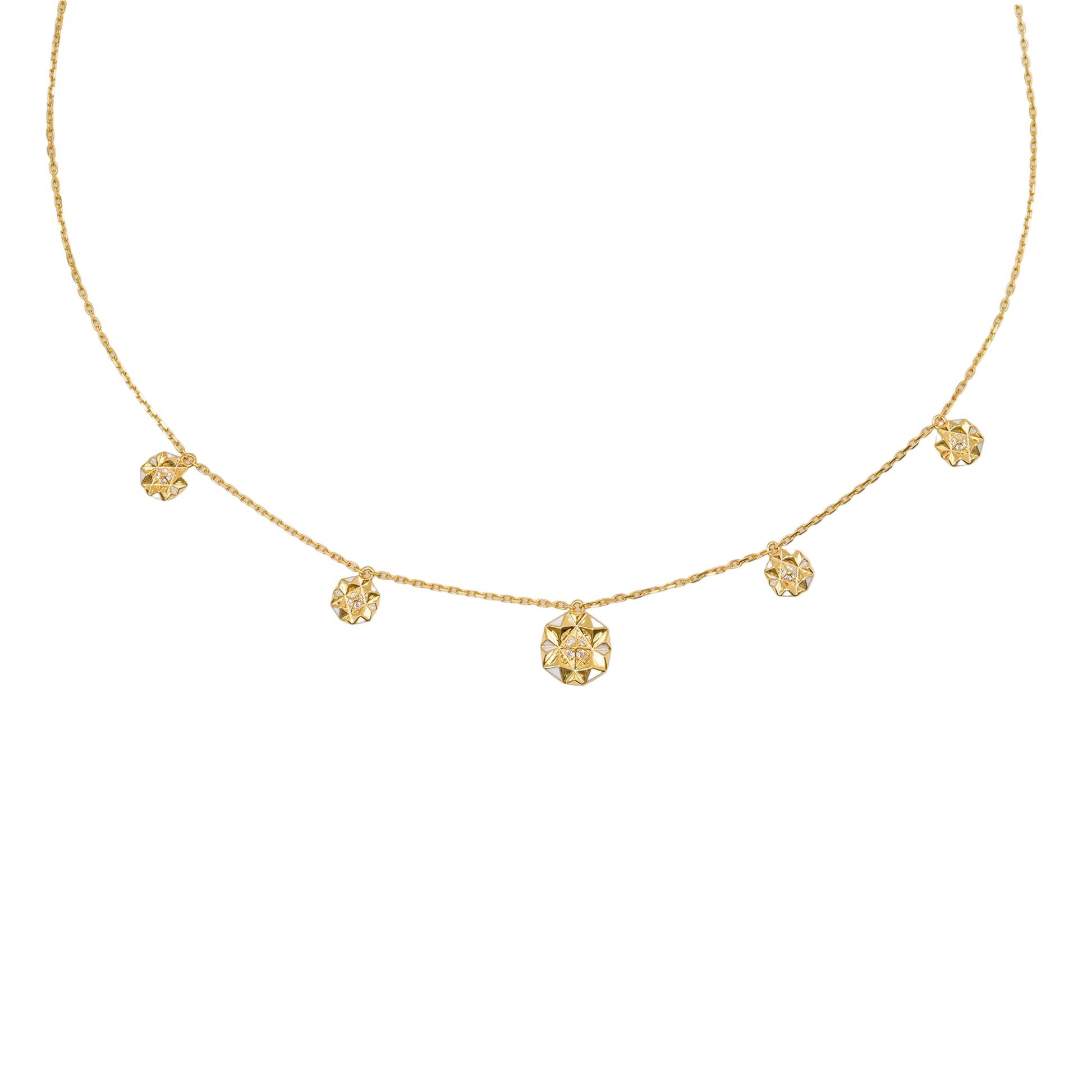 This Slopes Charm Diamond Necklace is crafted in 18K gold and set with 20 VS diamonds. Its geometric charm design is inspired by the mountain slopes, giving it a modern and elegant look. Easy to wear on its own or layered with other pieces, itβs a versatile choker that works for both everyday outfits and special occasions.